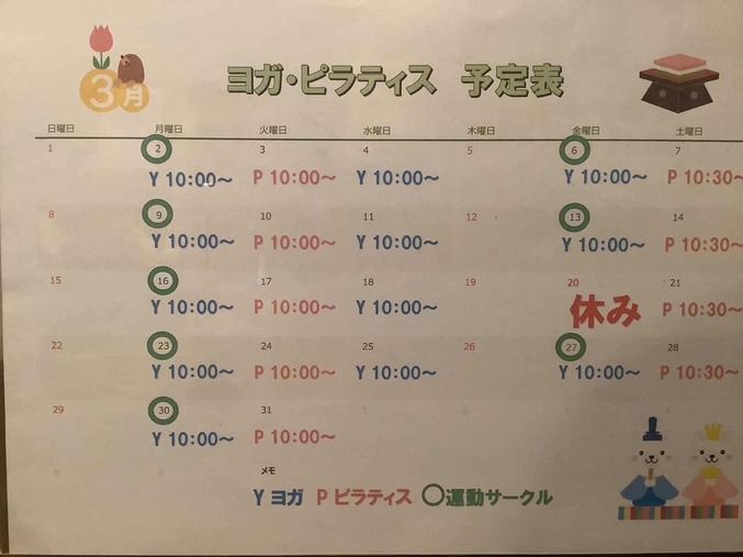 3月の予定表になります